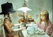 In his gold-braided red jacket and top hat, the White Rabbit’s role as a sinister circus ringmaster corralling the action is continually undermined by Alice. It is Alice who steers the narrative, speaking each of the characters’ lines while the camera homes in on her mouth, momentarily suspending the action. By the end of the film, one gains an insight into why this innovative Czech avant-garde film-maker was banned from his craft by Communist authorities in 1972. The absurd trial near the film’s end is defiantly resisted as Alice refuses to read a pre-prepared script. At the film’s ambiguous close we see her relishing the prospect of revenge: she prepares to act as the Rabbit's executioner, thereby turning the tables on him.