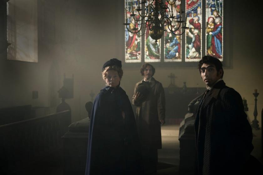 Typical of Gatiss, he revives Man-Size in Marble in an unexpected manner. In the original story, a bewildered husband gets the first – and last – word. In Woman of Stone Nesbit herself (Celia Imrie) tells the story to entertain her handsome young doctor (Marwaan Rizwan). In the tale-within-a-tale, local housekeeper Mrs. Dorman (Monica Dolan) warns newlyweds Laura and Jack to stay away from a nearby, disused church lest they encounter its terrible secret.