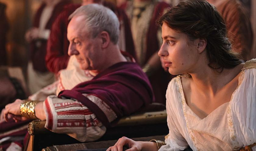Sprawling chunks of of time are spent with characters huddling together and delivering hefty chunks of exposition. This fills the viewer in on the geopolitics of the Roman empire and introduces numerous characters with interminable Latin names, but it slows the narrative to a glacial pace.