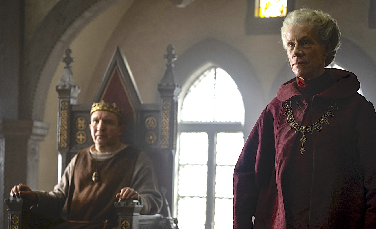 Thespian-wise, credit is due to Clémence Poésy, who brings a mixture of strength and knowingness to her portrayal of William’s wife Matilda, while Eddie Marsan portrays King Edward the Confessor as a disturbed, introverted religious fanatic. Jean-Marc Barr and Geoff Bell are surly, bellowing bullies as the French King Henry and Harold’s father Godwin (Bell and Norton pictured above). But top scenery-chewing accolades surely belong to Juliet Stevenson as Edward’s mother, Lady Emma. Equipped with a twin-headlights stare and a murderous and unscrupulous personality, she’s like the mad woman in Jane Eyre crossed with the titular character in Carrie. She looks as though she belongs in another show entirely, but they could have used a few more like her.