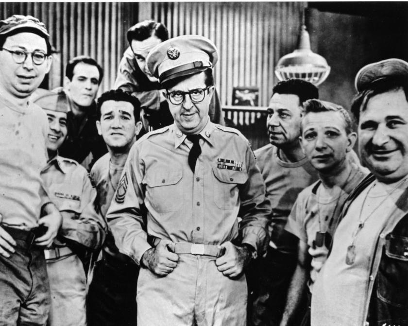 Bilko’s interaction with his platoon is equally crucial. Though greatly admired by Larry David, Bilko’s Fort Baxter is a working-class environment lost in recent sitcoms such as Seinfeld, and follows the World War Two platoon film formula of a rich range of characters. From pug-faced Private Doberman to Bilko’s loyal henchmen Rocco Barbella and Steve Henshaw, to Palmer and Sugarman, pre-Civil Rights black regulars never used for racist comedy, they all memorably orbit Ernie Bilko. “Nobody can bring people to life like he does,” Hiken remembered in wonder at his star’s effect on the rest. President Eisenhower was a big fan, joining much of his nation in loving a wholly irreverent show set in the US Army at the Cold War's height.