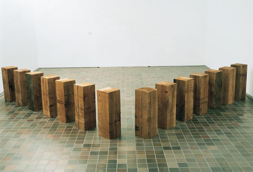 The experience couldn’t be more different at Turner Contemporary. Here are eight of Andre’s sculptures dating from 1967 to 1983, filling just one gallery. It’s a dense display and feels anything but arid and lifeless. As you step across the gallery’s entrance you’ll find a “runner” of metal plates in shades of polished black and grey laid across the floor. The work, 4 x 25 Altstadt Rectangle, 1967, stretches from almost one length of the gallery to the other. You’re invited to walk across its worn surface, and you’ll occasionally hear the satisfying rattle of dislodged metal as you do so.