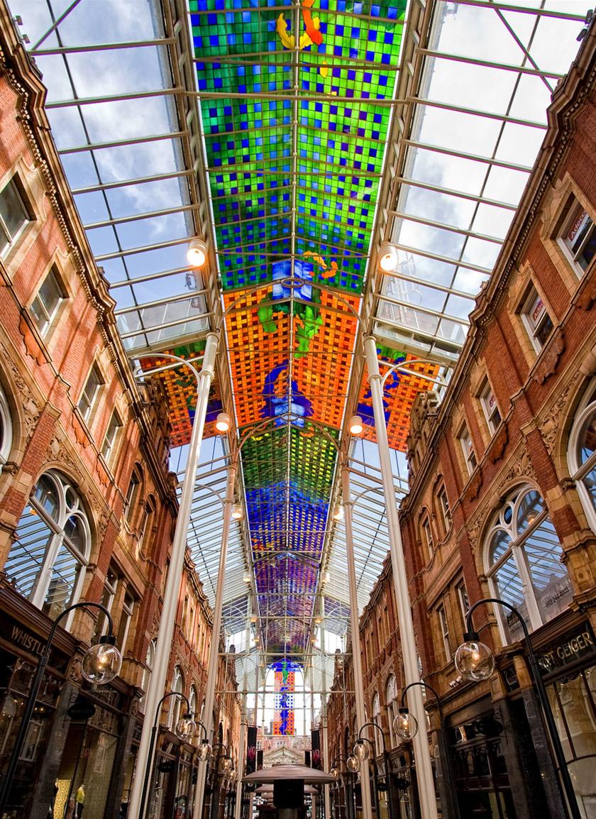 There is something instantly pleasing about Clarke’s work with glass and he has chosen to work in public spaces – shopping malls as well as churches, mosques and synagogues, airports – as well as private homes and corporate headquarters. He believes passionately that light, shining through large sheets of coloured glass, has the power to change people’s lives. It is perhaps this commitment to touching people directly and changing the architectural and urban spaces they move through that has alienated a critical consensus which would have art provoke conceptual questions, rather than create accessible moments of transcendence.