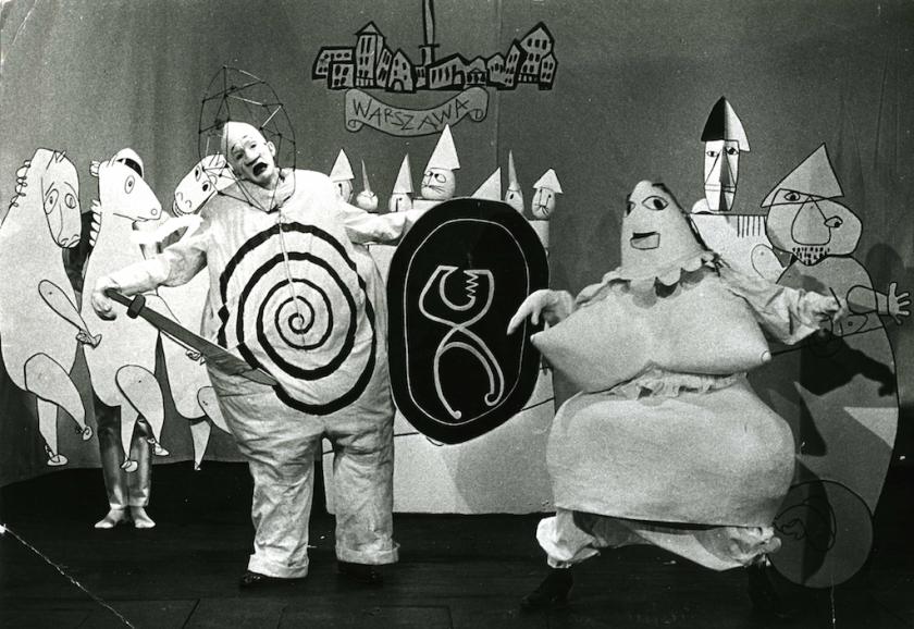 But it's the books that are the most memorable. They provided one of those eureka moments, when work you think you don’t know turns out to be extremely familiar. The case in point is Alfred Jarry’s absurdist play Ubu Roi, 1896. The Themersons published the first English translation of this comic classic, and Franciszka also produced the masks for a reading of the play at the Institute of Contemporary Art in 1952 and the costumes and sets for a 1964 production in Stockholm’s marionette theatre, which then toured the world. In 1969 she began a comic strip version in which the delicacy of her line makes the antics of the demonic anti-hero seem even more preposterous and arbitrary (pictured above).
