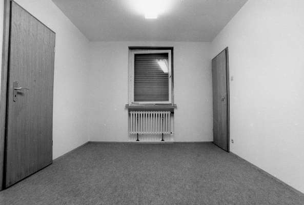 These black-and-white photographs look like those taken at the scene of a crime. Some of them show empty, office-like spaces, kitted out with false windows and cheap plywood doors (pictured right), while others show dank, cellar-like bunkers. Some are full of junk and debris, their walls half demolished. In a few of his dilapidated interiors Schneider has created macabre tableaux: in one, a sex doll, partially covered, is squeezed between a radiator and some wooden debris. One gets the feeling that, if Schneider hadn’t invested all in his “art”, then things might have turned out very badly indeed. One thinks, perhaps, of Josef Fritzel.