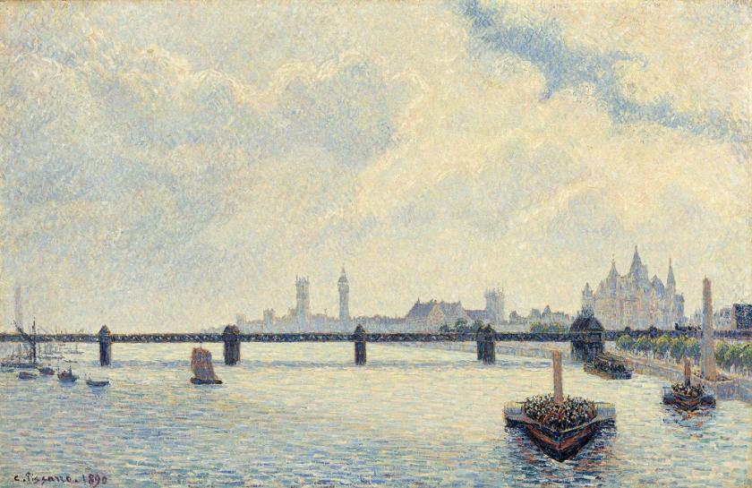 Camille Pissarro (1830-1903), the sage and wise paternal figure to so many of the Impressionists, is here with his wonderfully evocative paintings of south London suburbs, of Kew, and cricket on the lawn: they look so tightly knit compared to the resplendently sensual sweeps of colour deployed by Monet in his London views (main picture: Camille Pissarro, Charing Cross Bridge, 1890). The Anglo-French Albert Sisley (1839-1899) is here too, his home and prospects destroyed by the Prussians.