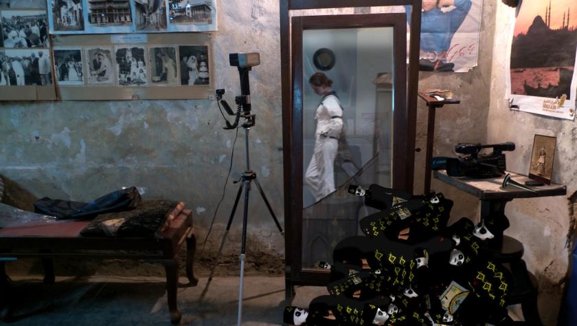 The product of that discovery is Nowhere Less Now, a challenging film that is part reality, part experimental storytelling. In a blackened room, images are projected onto two floating spheres that resemble giant ping-pong balls. A pair of eyes - one blue, one brown - blink, before a soothing voice starts to narrate a story that moves backwards and forwards like the ebb and flow of the ocean. We enter a world of witchcraft and fortune-tellers; photographs have become redundant and history no longer exists. But the narrative is puzzling. We are whisked through a hasty multilayered montage about not one George Edwards but two that is almost impossible to follow – and that is just the point.