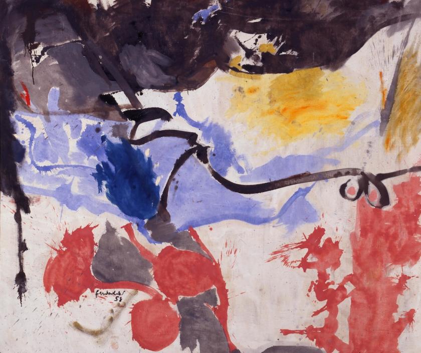 Helen Frankenthaler is often presented as being both a stepping stone between art movements and as an artist who fell – because such things matter in the tidy narratives of art history – between the cracks of various American isms. Frankenthaler, who made her name in the fertile New York art scene of the early Fifties and who died in 2011, found success and fame early, but then had the possible misfortune to be seen as a “transitional figure”.