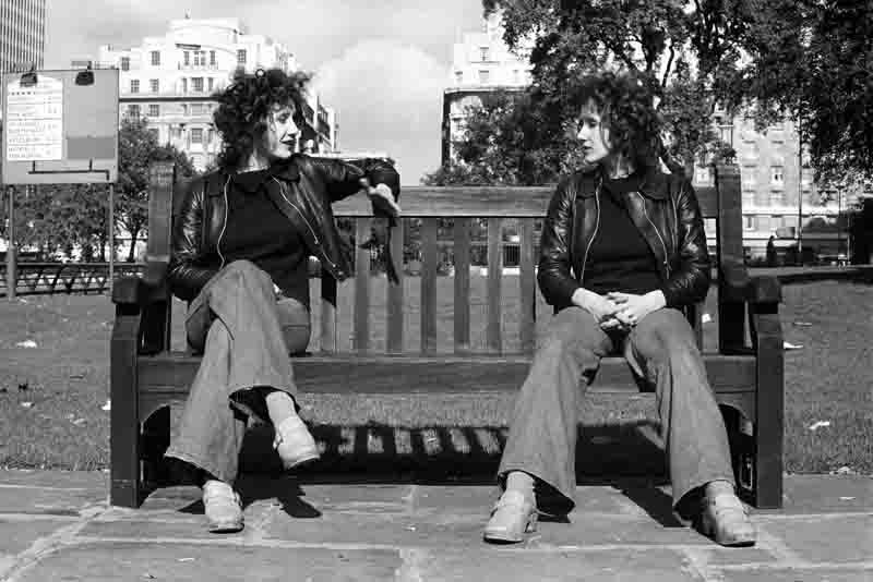 Women artists of our generation were routinely ignored, dismissed or patronised; many gave up and those who persisted often felt isolated, as if they were talking to themselves. On a practical level, Finn-Kelcey joined the Women Artists’ Collective and helped found the Women Artist’s Slide Library, groups whose purpose was to offer help and support. But she also addressed the issue in her work. Divided Self (Speaker’s Corner), 1974 (main picture) is a pre-photoshop black and white photograph of herself sitting on a park bench – talking to herself. The idea is incredibly simple, yet it continues to resonate across the decades because it encapsulates the experience of being a woman at a time when female voices usually went unheard.