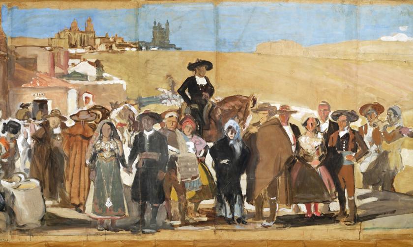 The vision of the Hispanic Society culminates in an ambitious work, a sketch for which is shown in the last room (main picture). In 1911 Archer Huntingdon commissioned the prized Spanish painter Joaquín Sorolla to decorate a room at the Hispanic Society. The resulting 14 murals came to be known as the Vision of Spain, 1911-1919; a layered townscape depicting regional cultures through figures, costumes and traditions. Sorolla used gouache paint and large, kraft paper spools that could be unfurled to any length; in fact, his grand vision reached its limit, exceeding the space available. He had originally hoped to include the regions of Mallorca, the Canaries, Africa, and Portugal. This expressionist blueprint reads like a novella of Huntington and Sorolla’s single vision of Spain. Sadly, Sorolla died before the series could be installed in 1926.